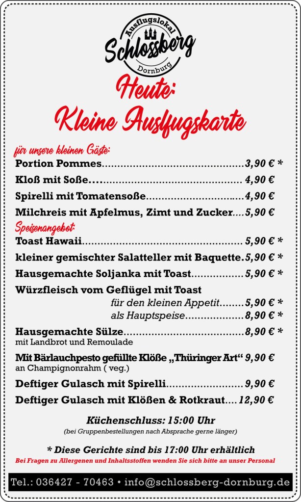 Bitte beachten Sie: Die kleine Ausflugskarte ist nur wochentags gültig!